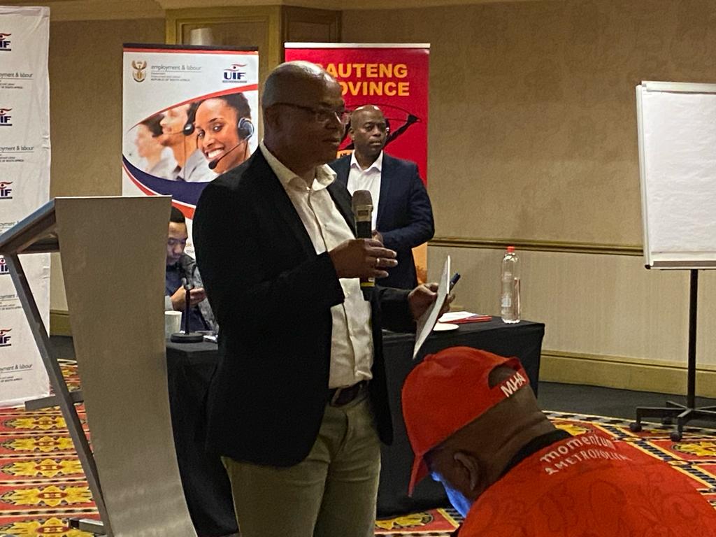 UIF Commissioner Teboho Maruping speaking at a meeting with Cosatu at Emperor's Palace in Kempton Park. Picture: Kgaogelo Magolego