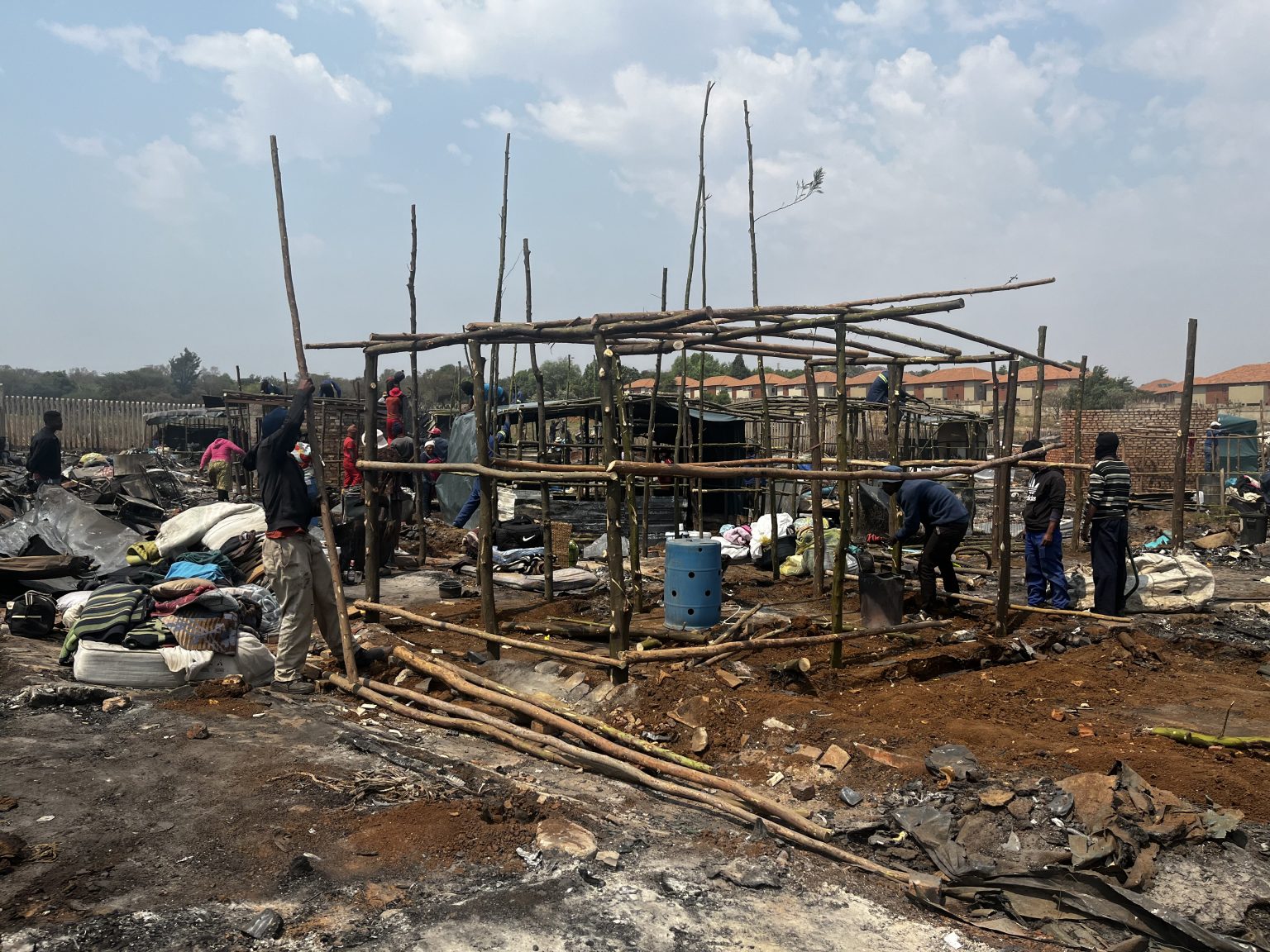They opted to start rebuilding their plastic shacks again next to the Pretoria East Cemetery and the Woodlands Mall where their previous structures stood before they were gutted by the fire a few days ago.