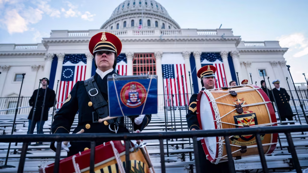 The US Army Band plays during a presidential inauguration rehearsal on Capitol Hill. Source: Jabin Botsford, the Washington Post