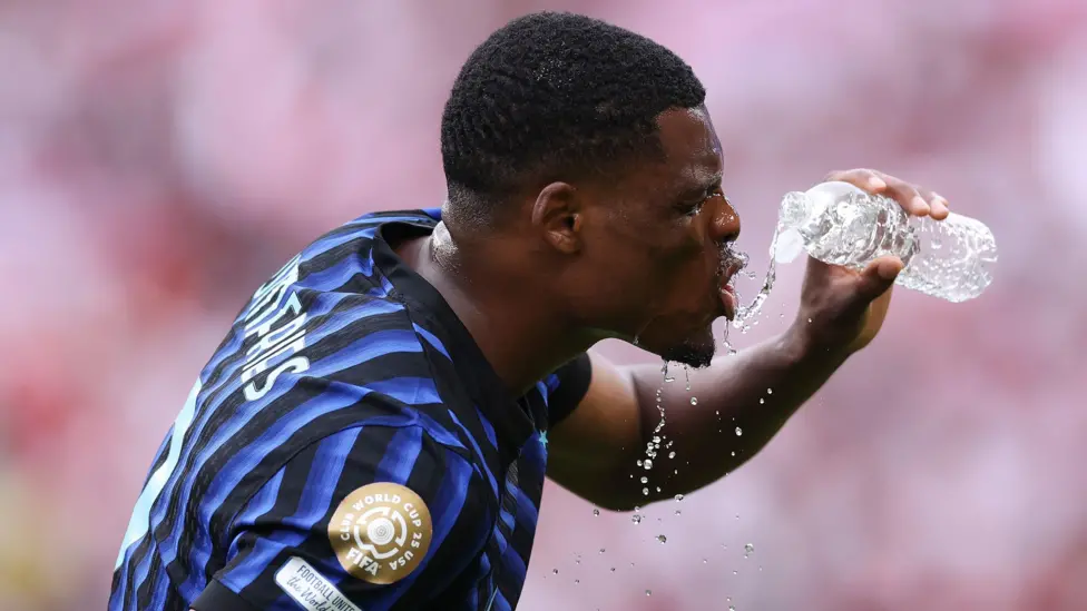 Inter Milan's Denzel Dumfries feeling the heat at the Club World Cup in America. Source: BBC