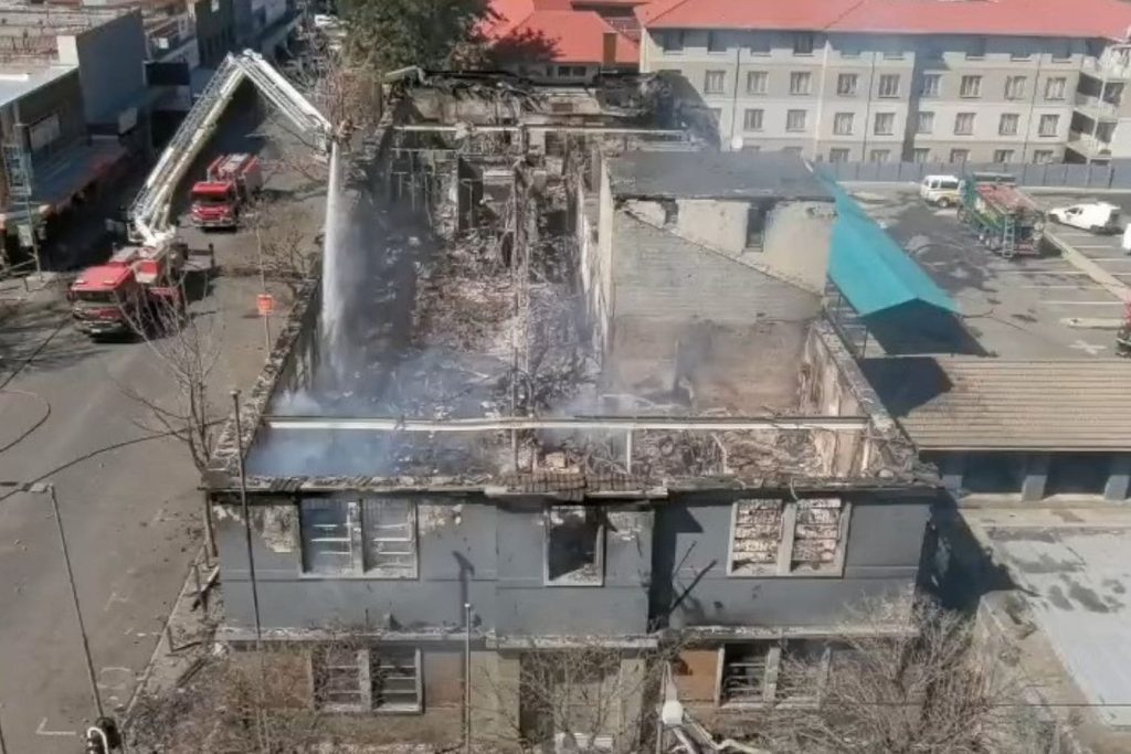 The building was allegedly torched by angry residents of a nearby block of flats, who were refusing eviction by the Ekurhuleni Municipality.