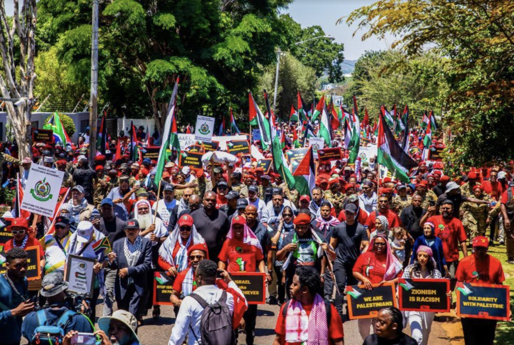 Earlier on during its march on the Israeli embassy in Pretoria the EFF accused the ruling ANC of failing to articulate clear support for Palestine or act against Benjamin Netanyahu’s government claiming President Cyril Ramaphosa’s internal leadership campaign was funded by businesses with close ties to Israel and he was therefore indebted to them.