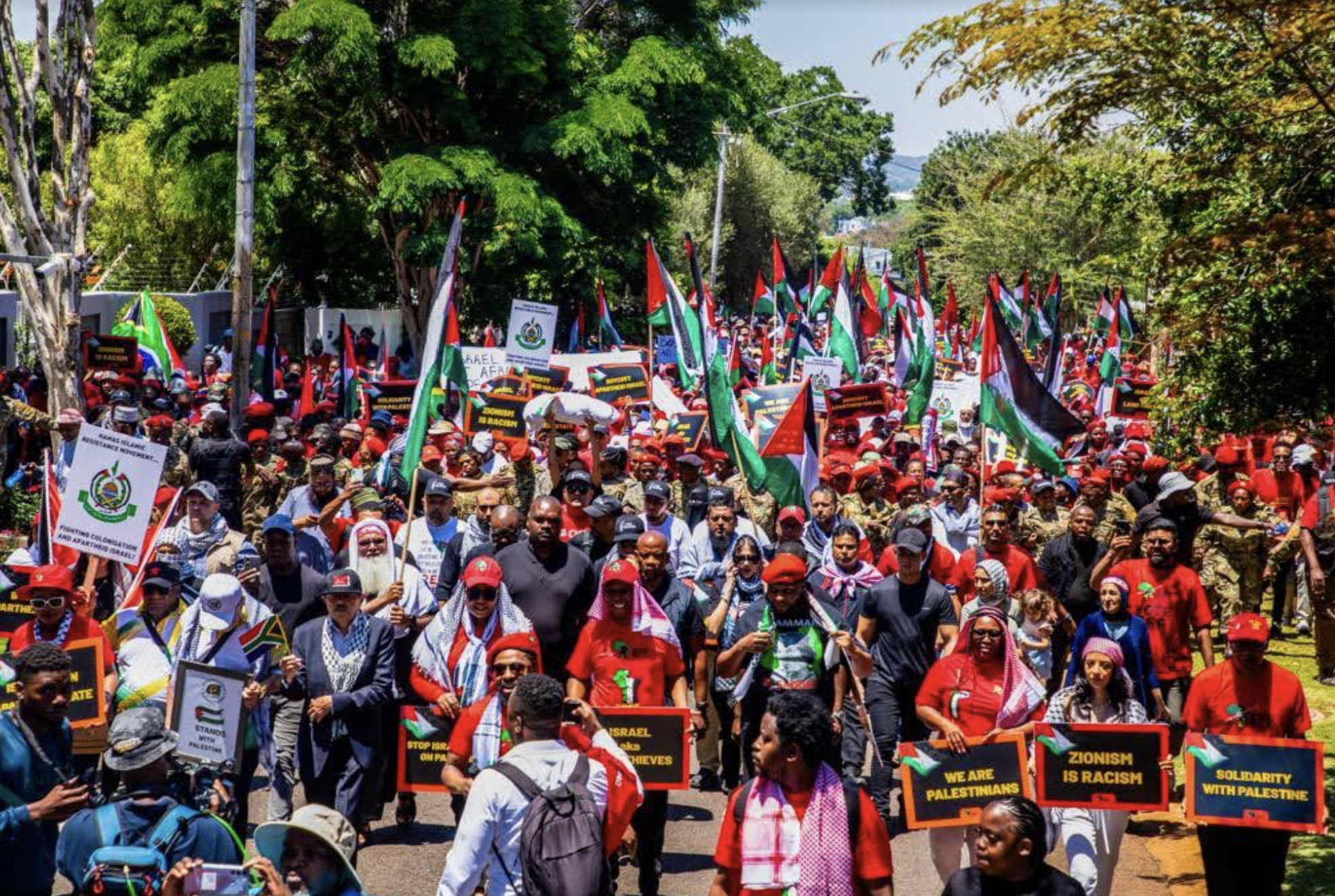 “Don’t listen to those who were here on Friday coming for PR. They’ve got the power to remove this nonsense behind this truck (embassy building). They are not removing it why? They are getting money from the Israeli government, that’s why they are scared of the Israeli government. Cyril Ramaphosa was made president with the money donated to him by the Jewish people who are behind this Israeli embassy and the Israeli government. Those who gave Cyril money are the Jewish who are not progressive, are Jewish people who want to perpetuate the apartheid Israel and the oppression of Palestine. Cyril can’t say anything. He went to the ANC NEC meeting and wore a scarf and those Jewish people were like you wear Palestine colours with our money and he had to issue a statement explaining himself”, said Malema about Ramaphosa and the ANC’s stance on the conflict.