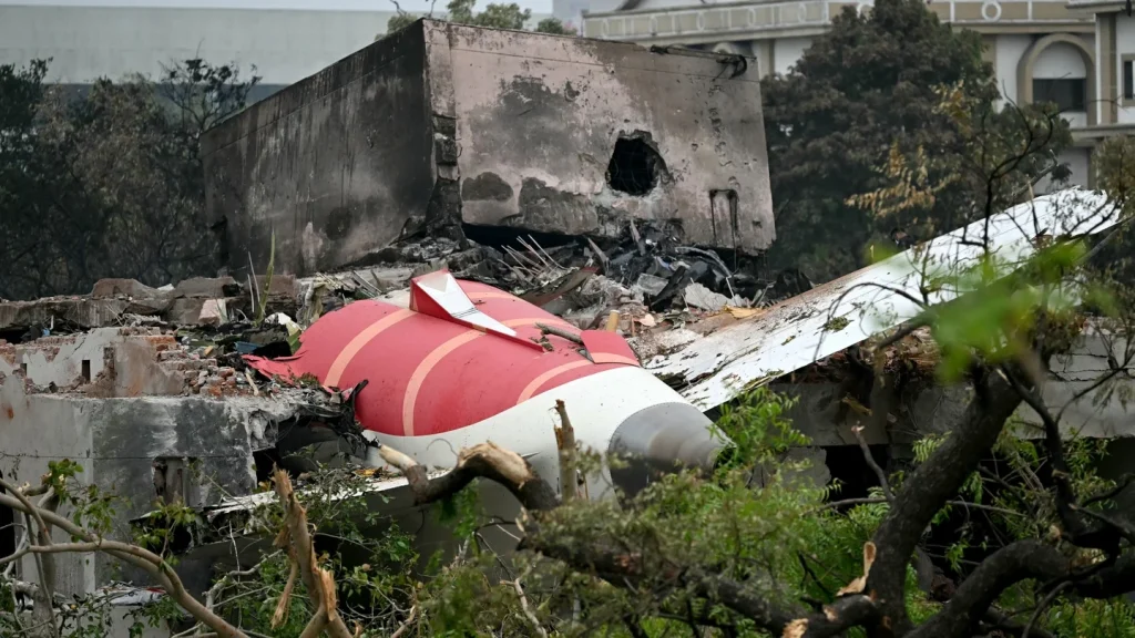 Debris from the plane is pictured after it crashed in a residential area near the airport in Ahmedabad.