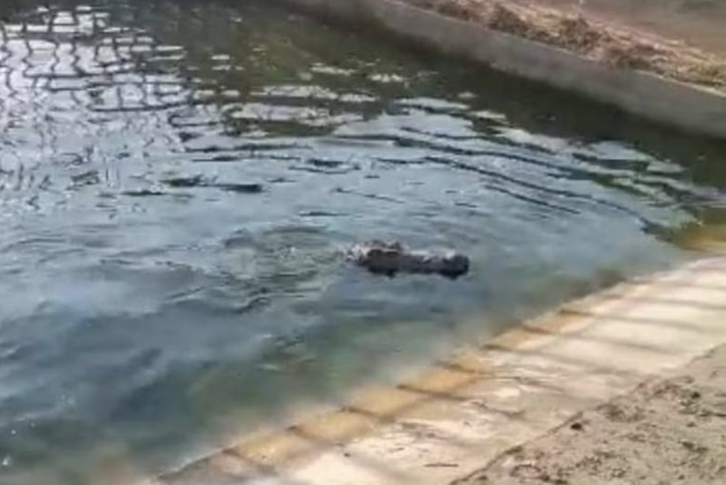 The crocodile back in the swimming pool at the farm it was stolen from. Source: South African Police Service