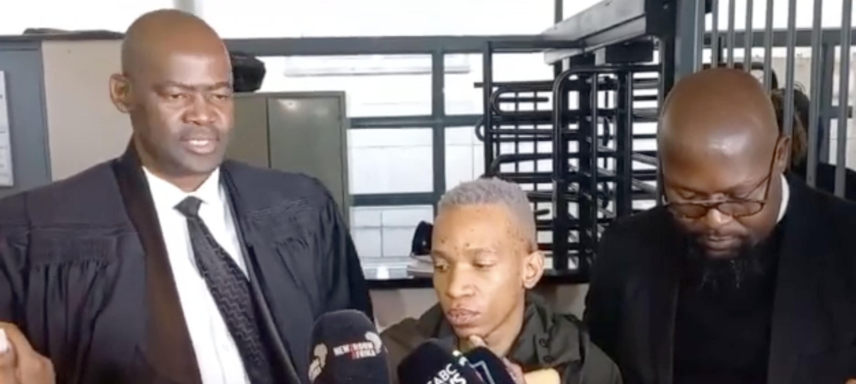 Lani staged an impromptu press conference with attorney Dumisani Mabunda at his side, sometimes rubbing his head. He was walking with crutches. A cut on his lip was also visible.