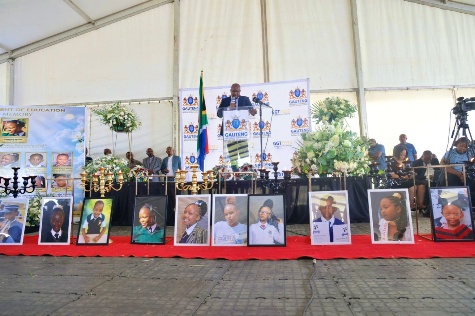 The memorial service brought together grieving families, friends, community members, and political leaders, including Gauteng Education MEC Matome Chiloane and former ANC Gauteng Secretary-General TK Nciza, all united by pain and loss.
