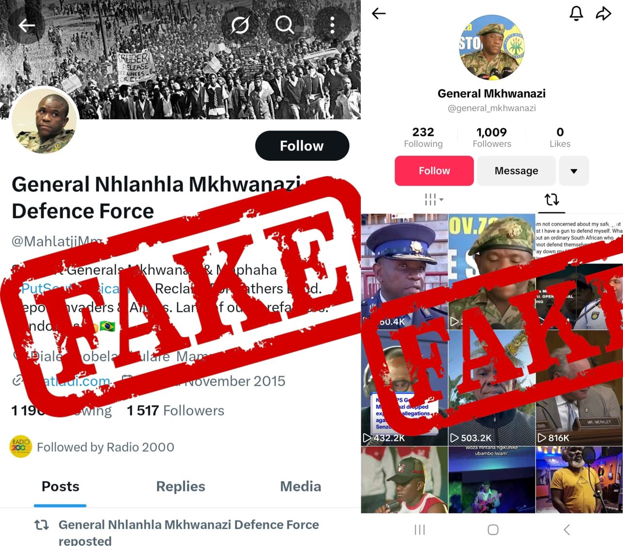Authorities report that multiple fraudulent social media profiles have been established, falsely claiming to represent KwaZulu-Natal Police Commissioner Nhlanhla Mkhwanazi.
