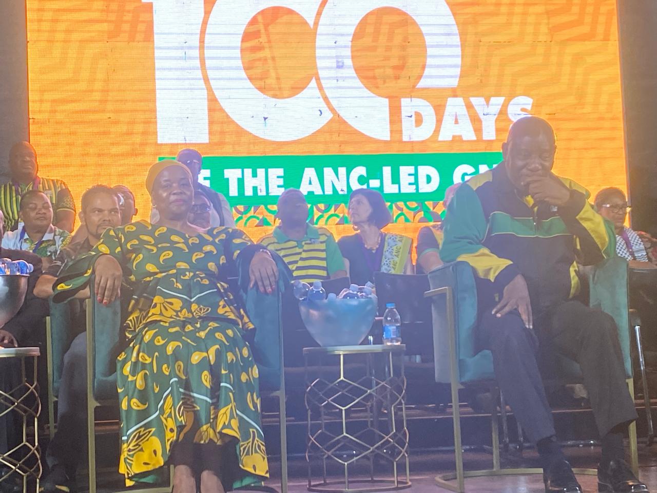 Ramaphosa gave a key note address at the ANC’s commemoration of a 100 days of the coalition government held at the party headquarters Luthuli House in Johannesburg where hundreds of supporters gathered for a large part of Monday.