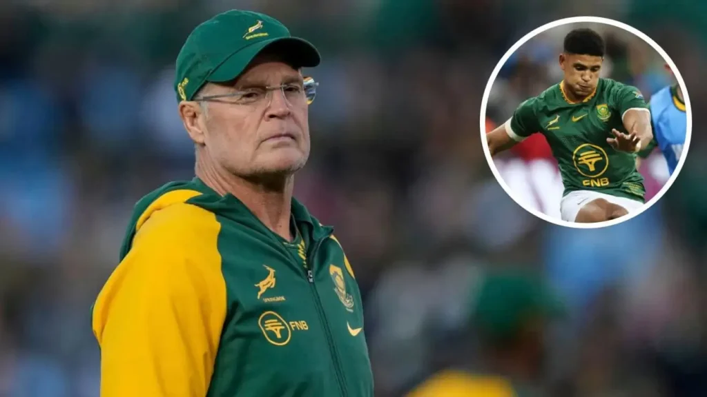 Springboks head coach Rassie Erasmus and fly-half Sacha Feinberg-Mngomezulu. Source: Planetrugby.co.za
