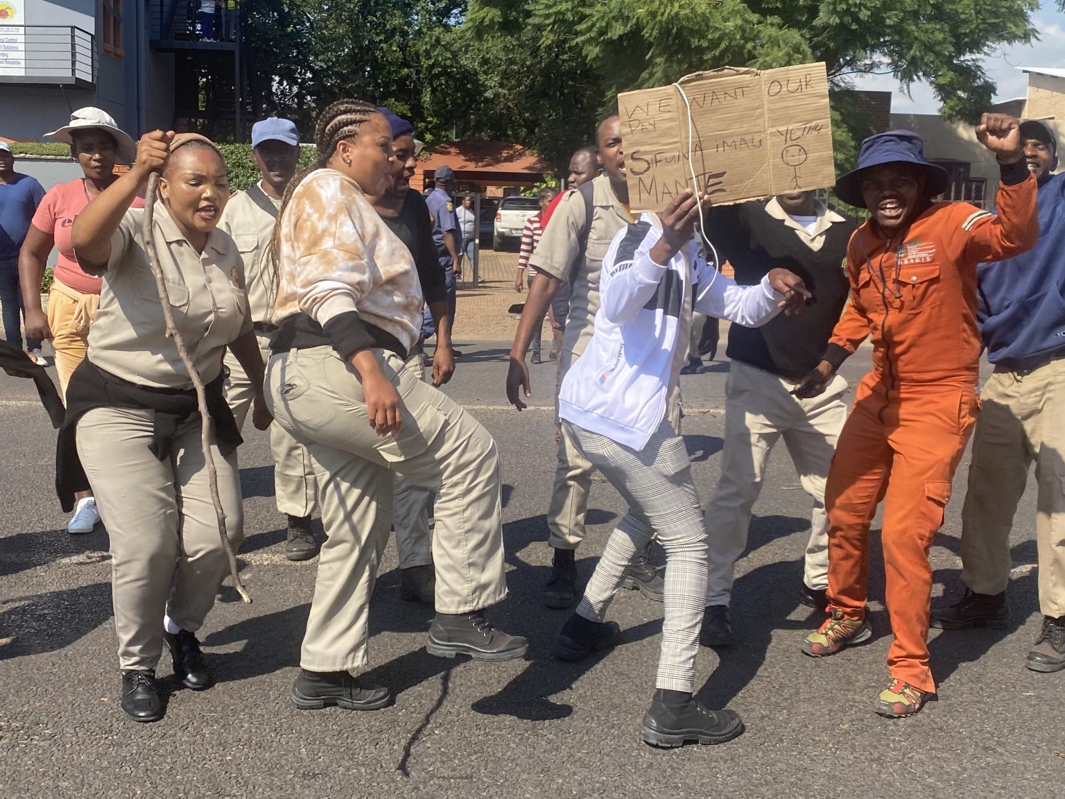 Traffic was disrupted in Rustenburg, North West, as scores of security officers blocked the busy Beyers Naude Road, demanding their salaries from their employer Ndivhuwo Security Training.