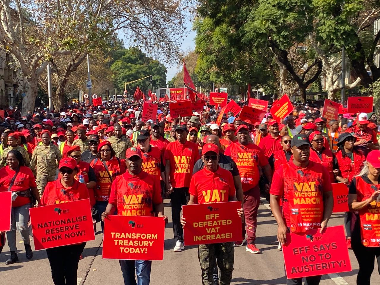 The Economic Freedom Fighters has vowed to keep pushing for the reform of the National Treasury and the South African Reserve Bank. The party on Monday marched on the Treasury in Pretoria in what it had branded ” VAT Victory March” to celebrate the withdrawal of a planned increase in the Value Added Tax. The EFF and the DA had taken the minister to court over his proposed budget which included a VAT increase.