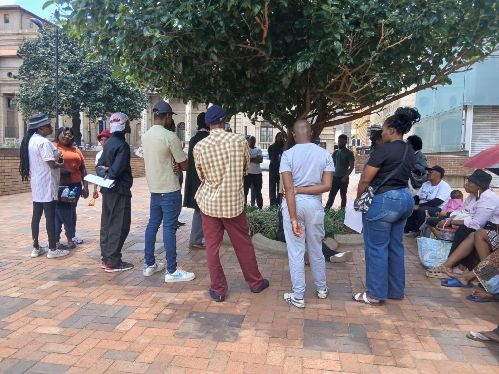Usindiso Building survivors say they are taking City of Johannesburg to Court after 76 people died when the fire broke out at Mashalltown in August 2023. They want the City to compensate them for the damages due to fire. They are gathered at Library Gardens in Johannesburg. Picture: Silver Sibiya