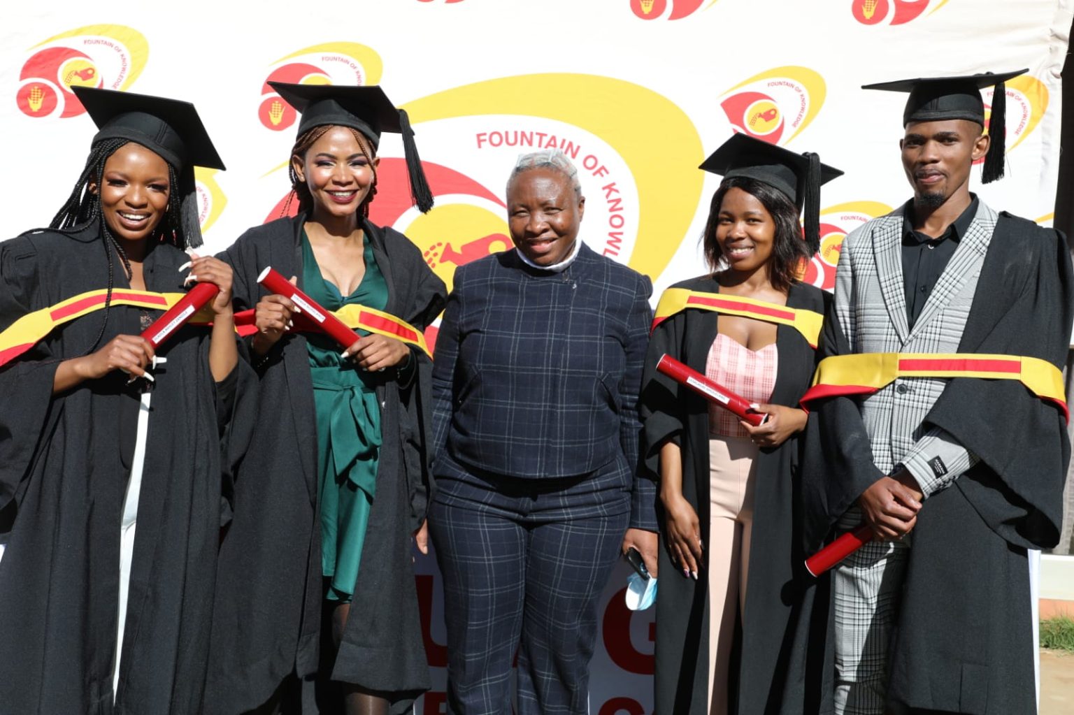 One of the graduates, Nomalanga Sibinda of Podumong outside Taung initially wanted to pursue a qualification in environmental studies but did not have the funds to do so.